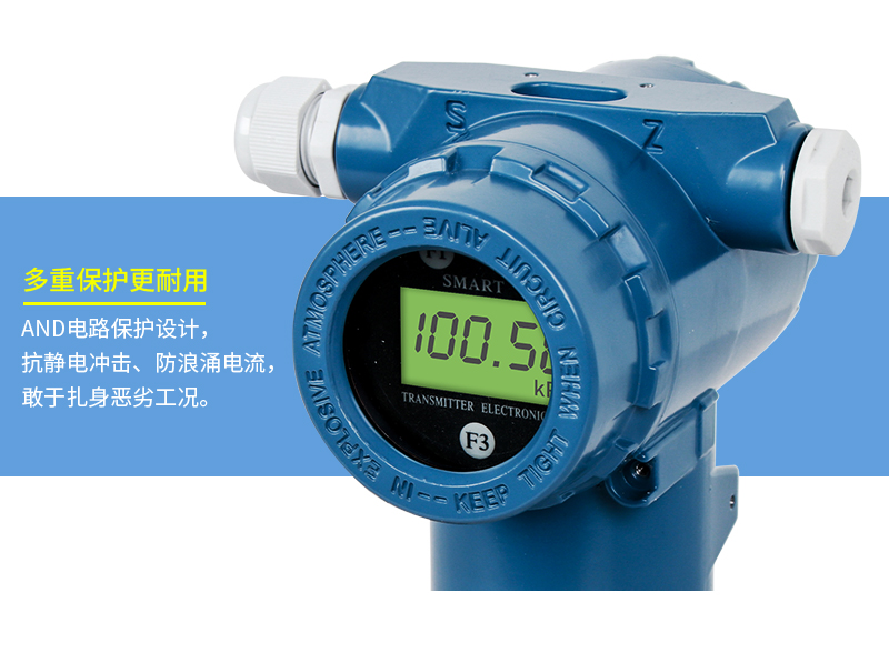 產品描述:SIN-3051系列壓力變送器利用差動電容檢測的原理,當膜片兩側壓力不一致時,使容室中測量膜片產生位移,其位移量與壓力差成正比,通過電路處理將電容變化量轉換成4~20mA的二線制電流或電壓信號,可帶上458協議或者HART通訊協議功能。該變送器具有堅固抗振,量程,零點和阻尼現場連續可調。