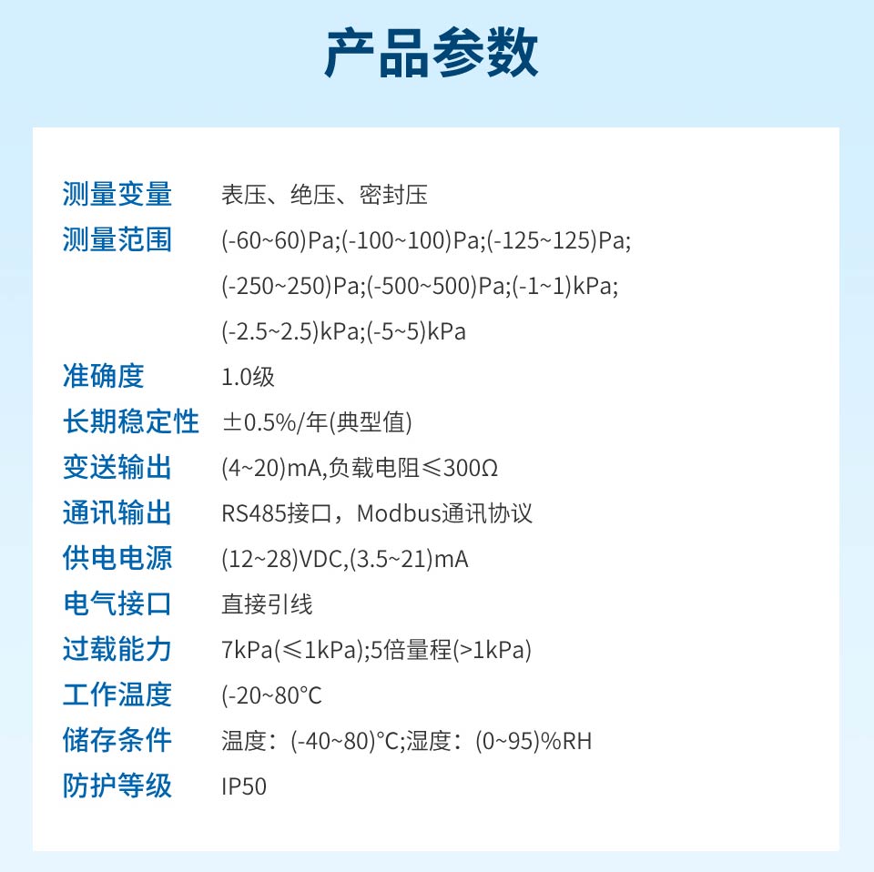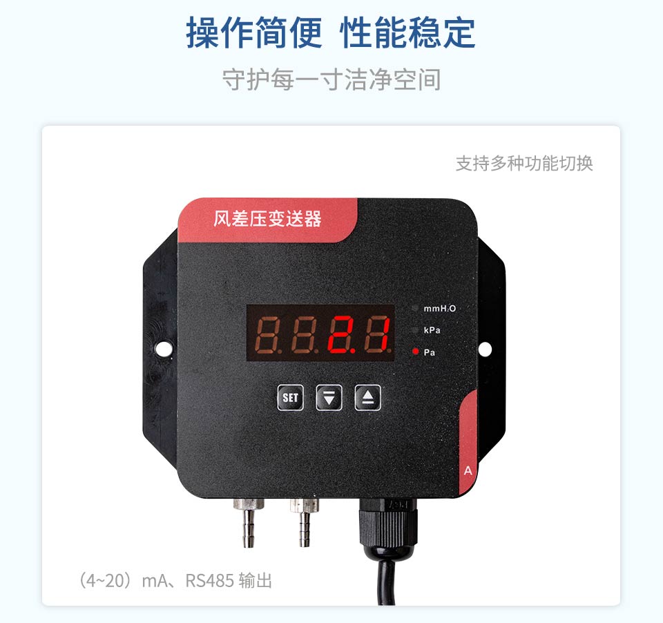 產(chǎn)品描述:數(shù)字風(fēng)差壓變送器采用原裝進(jìn)口差壓傳感器做為感壓元件,配合超低功耗數(shù)字調(diào)理電路,使其具有精度高、長期穩(wěn)定性好等特點(diǎn)。與機(jī)械差壓計(jì)相同的安裝方式,便于工程人員現(xiàn)場安裝調(diào)試。該系列數(shù)字風(fēng)差壓表可用于潔凈室、手術(shù)室、無塵室、通風(fēng)系統(tǒng)、 風(fēng)機(jī)測試等對于高精度微差壓的測量與控制。
