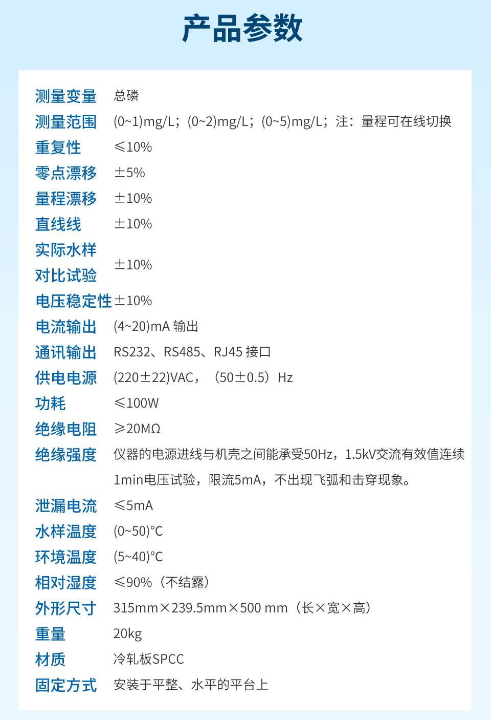 產(chǎn)品描述:TP 型總磷水質(zhì)在線分析儀采用鉬酸銨分光光度法檢測(cè),符合《總磷水質(zhì)自動(dòng)分析儀技術(shù)要求》(HJ/T 103)、《水質(zhì) 總磷的測(cè)定 鉬酸銨分光光度法》(GB 11893)、《污染物在線自動(dòng)監(jiān)控(監(jiān)測(cè))系統(tǒng)數(shù)據(jù)傳輸標(biāo)準(zhǔn)》(HJ 212)、《地表水自動(dòng)監(jiān)測(cè)儀器通信協(xié)議技術(shù)規(guī)定》等標(biāo)準(zhǔn)和規(guī)范的要求。