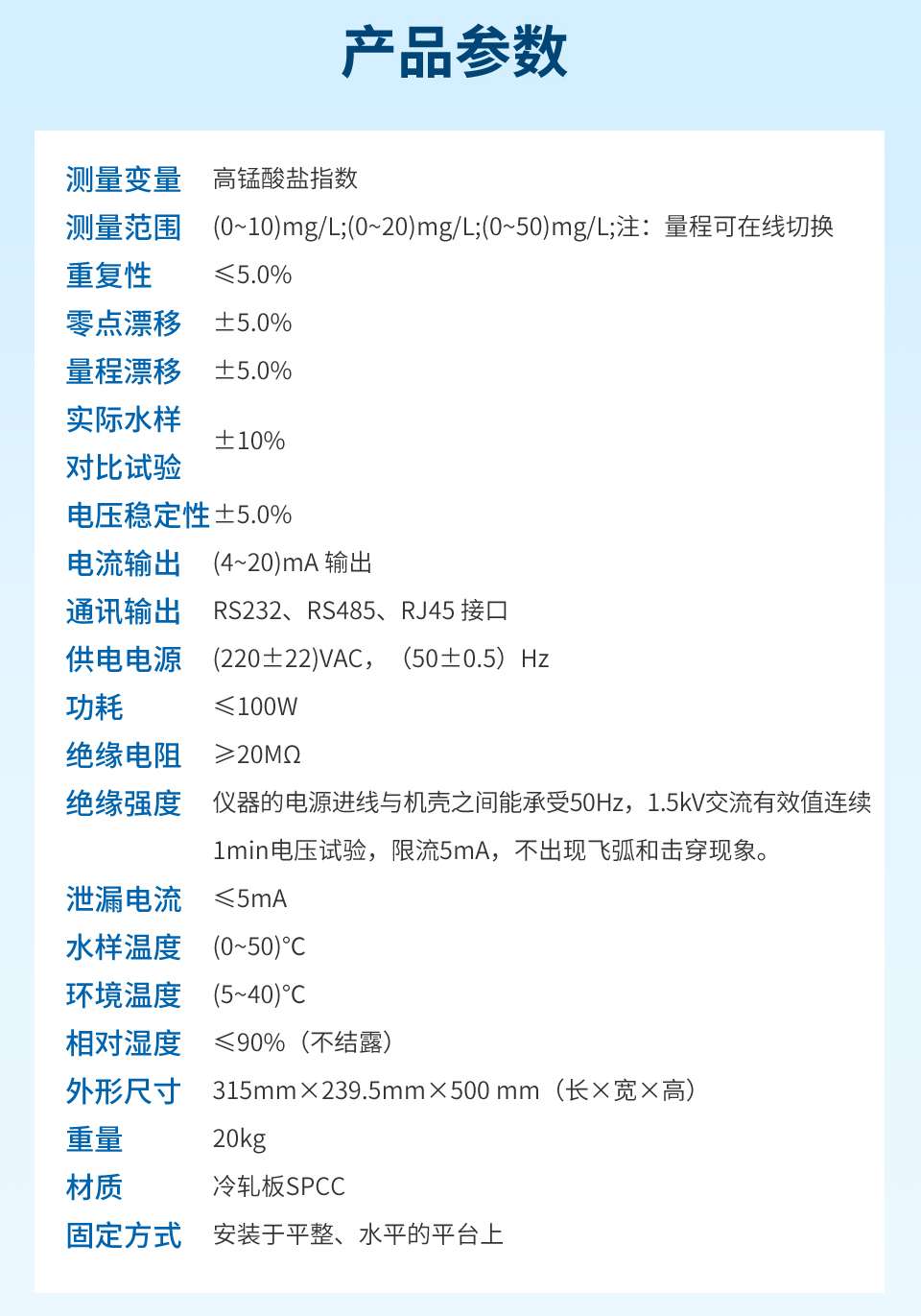 產品名稱:聯測_IMN型高錳酸鹽指數水質在線分析_試劑消耗量小,雙光路式檢測,支持USB、TF卡、IPv4網絡