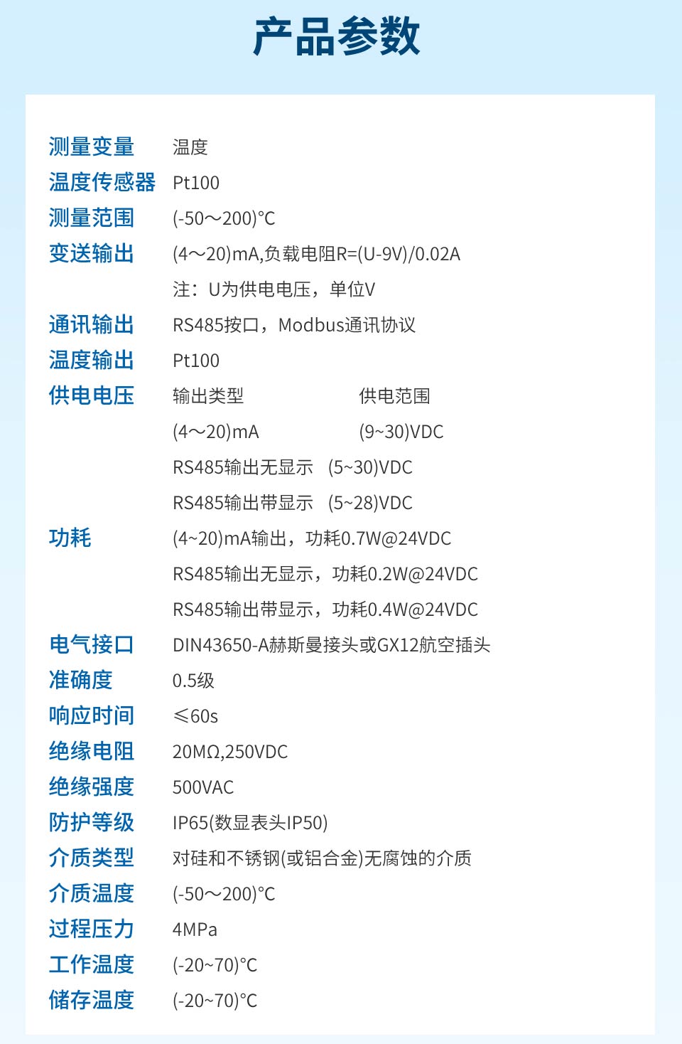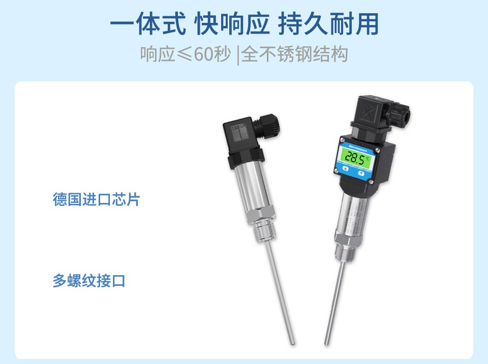 產品描述:本產品使用高穩定性的電路進行信號處理,實現溫度連續測量和輸出,采用高精度24位ADC轉換為數字信號,同時可以實現顯示、遠傳等功能。廣泛應用于石油、化工、電力、輕紡、環保等領域中對水或油的溫度測量。